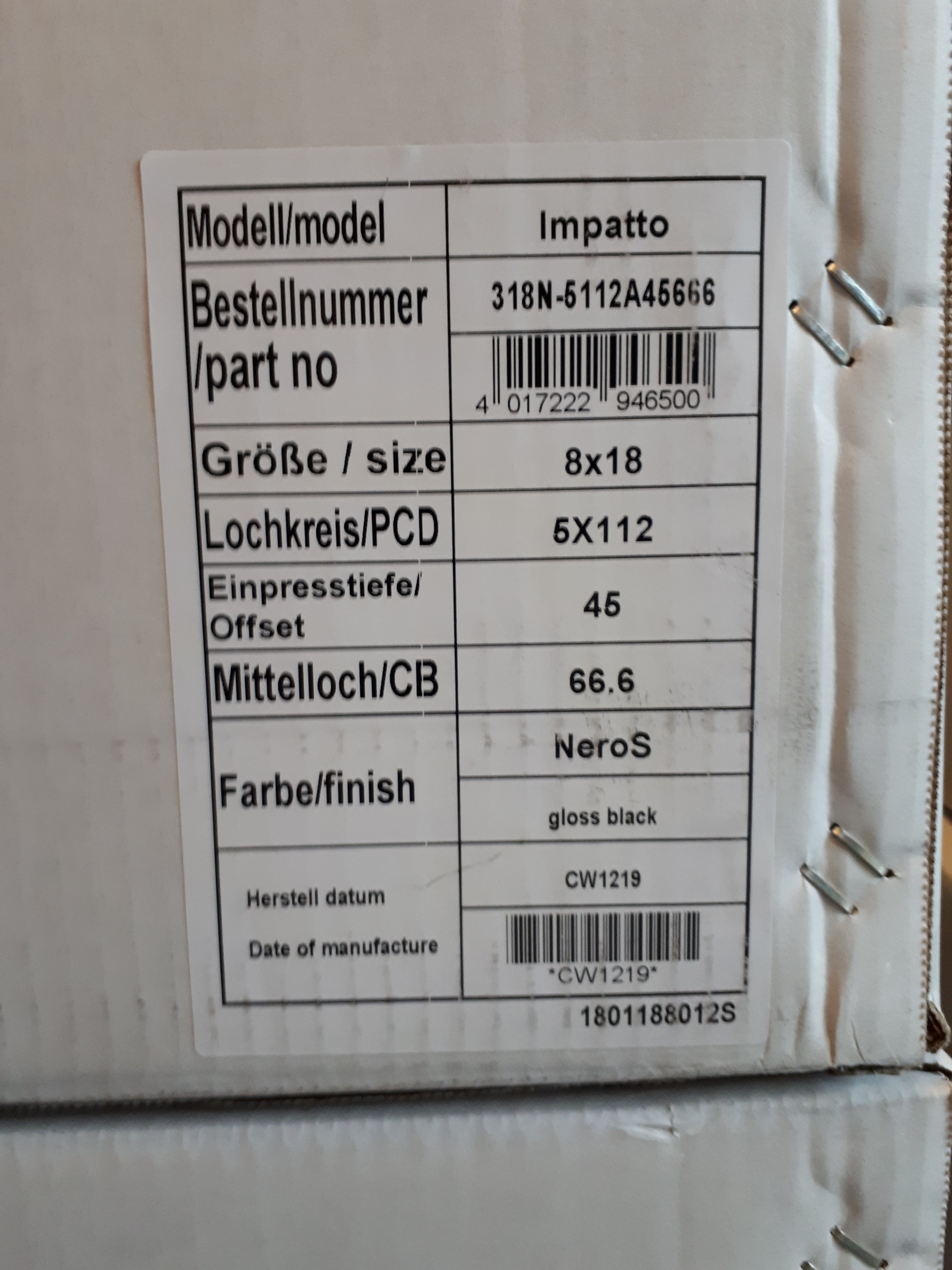 ich biete hier 4 neue IMPATTO NeroS Felgen in gloss black zum Kauf an.