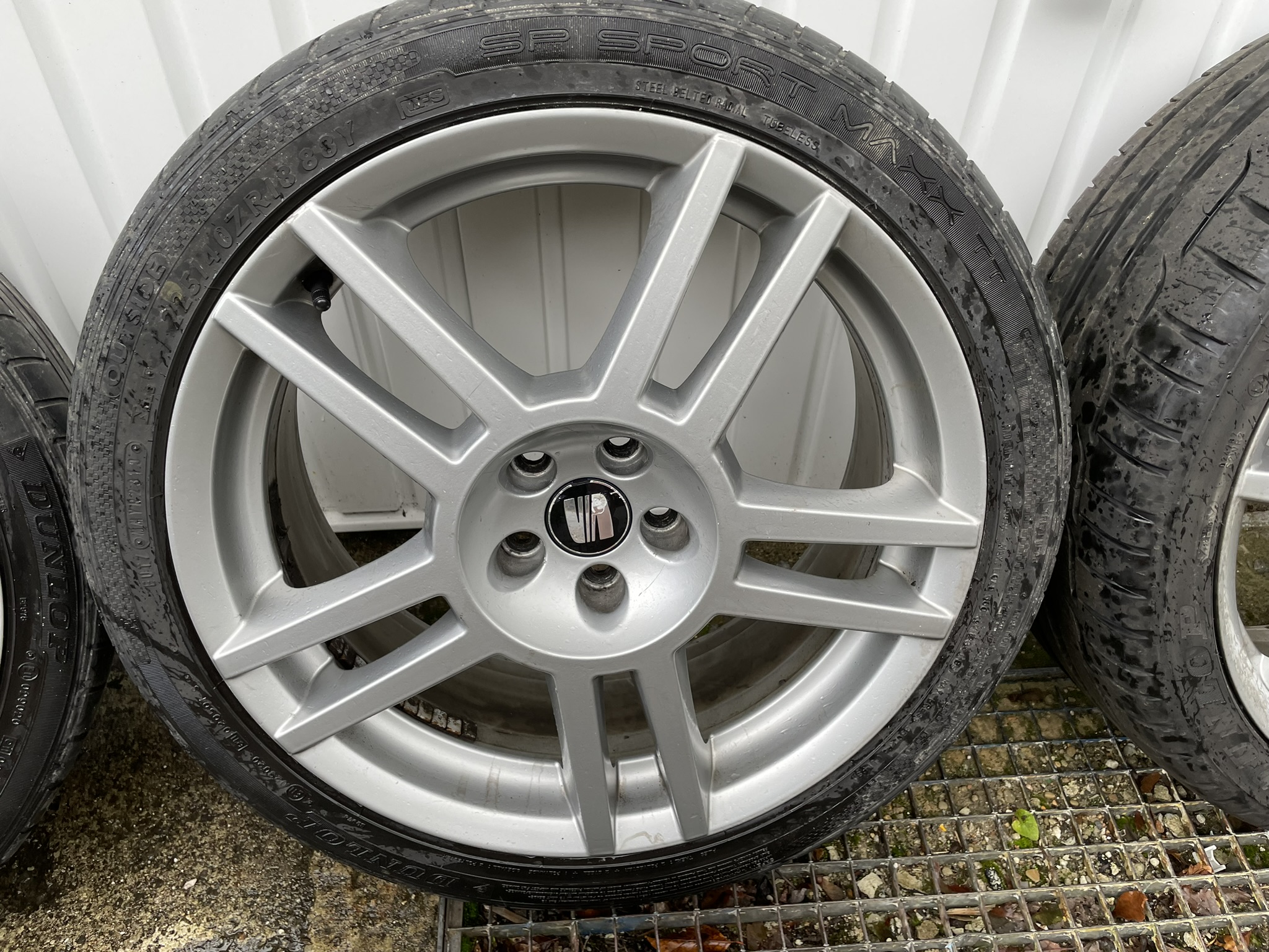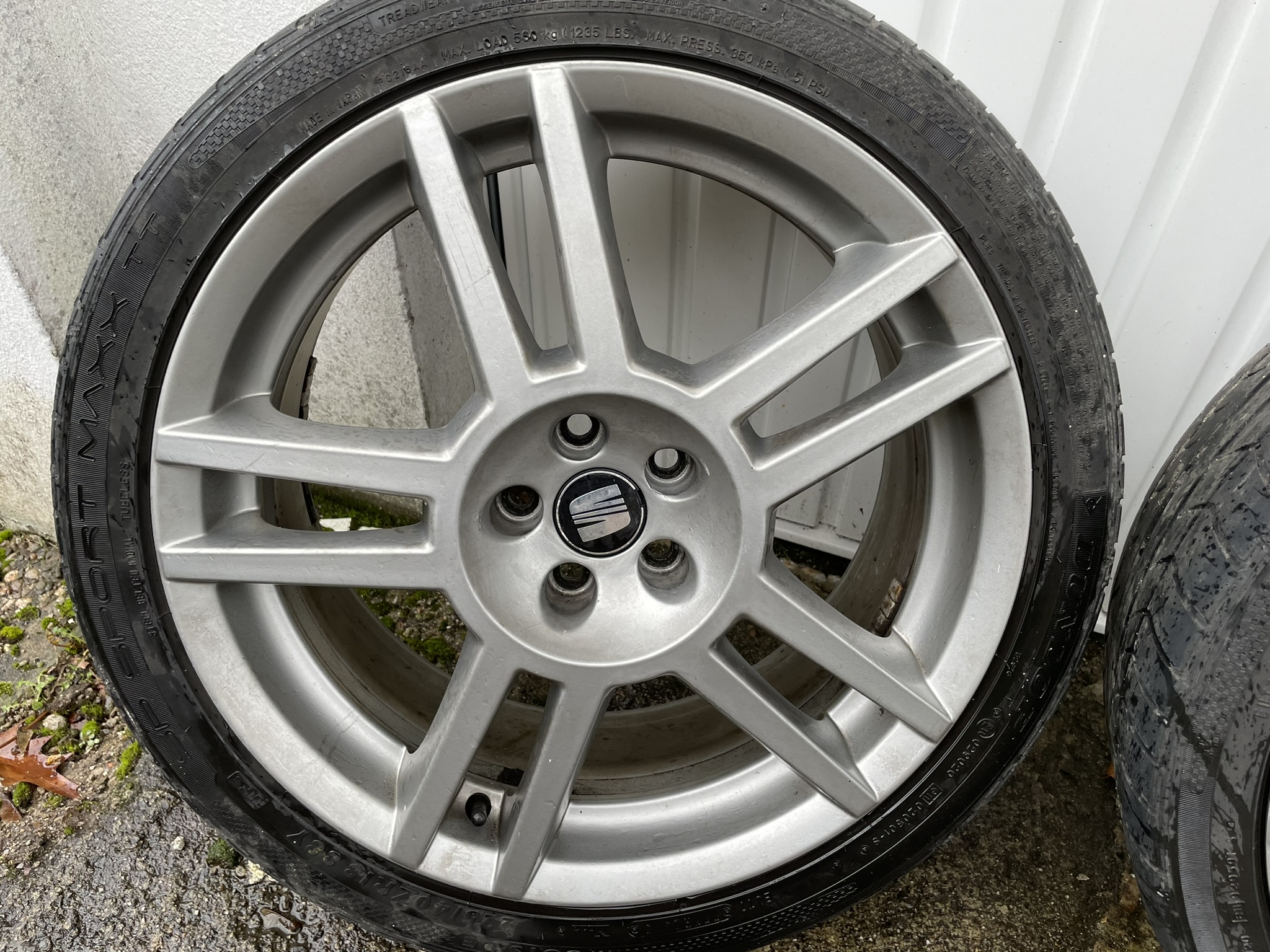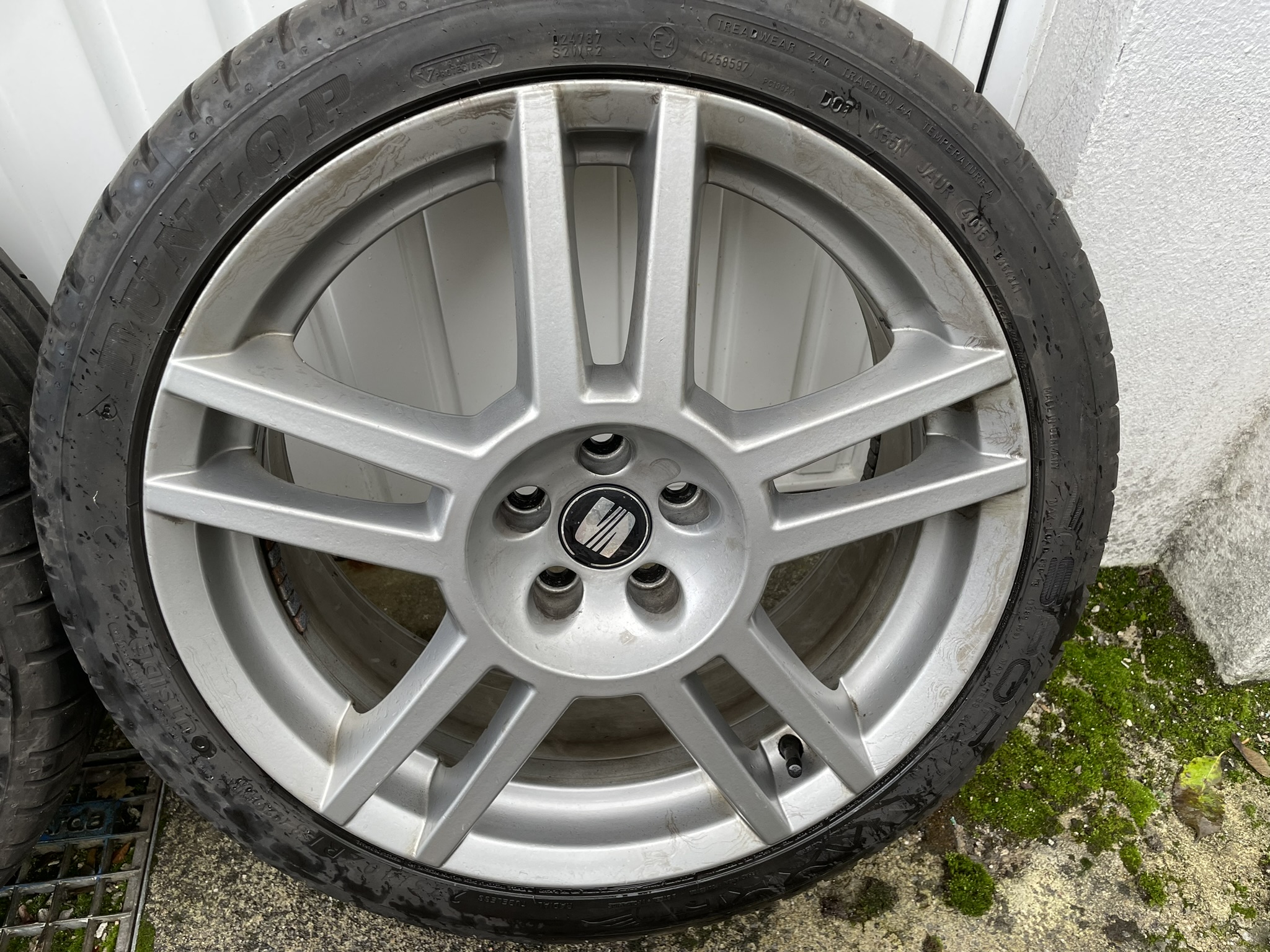 Zu Verkaufen sind seltene Arrasate Räder vom 1M Cupra R, die Kenner unter euch wissen was hier angeboten wird...! Die Räder waren zuletzt auf meinem Leon bis 2019 gefahren worden. Bis heute lagen diese trocken und dunkel im Keller. Zwei Reifen sind definitiv abgefahren und sind auszutauschen. Die anderen zwei Reifen (Dunlop Sportmaxx) sind vom Profil her neuwertig und aus dem Jahr 2019. Die Räder bräuchten aufgrund der Lagerzeit ein weinig "Aufbereitungsliebe", wonach sie wieder herrvorragend aussehen werden. Die Räder haben KEINE Boardsteinschäden und wurden daher NICHT nachgearbeitet!