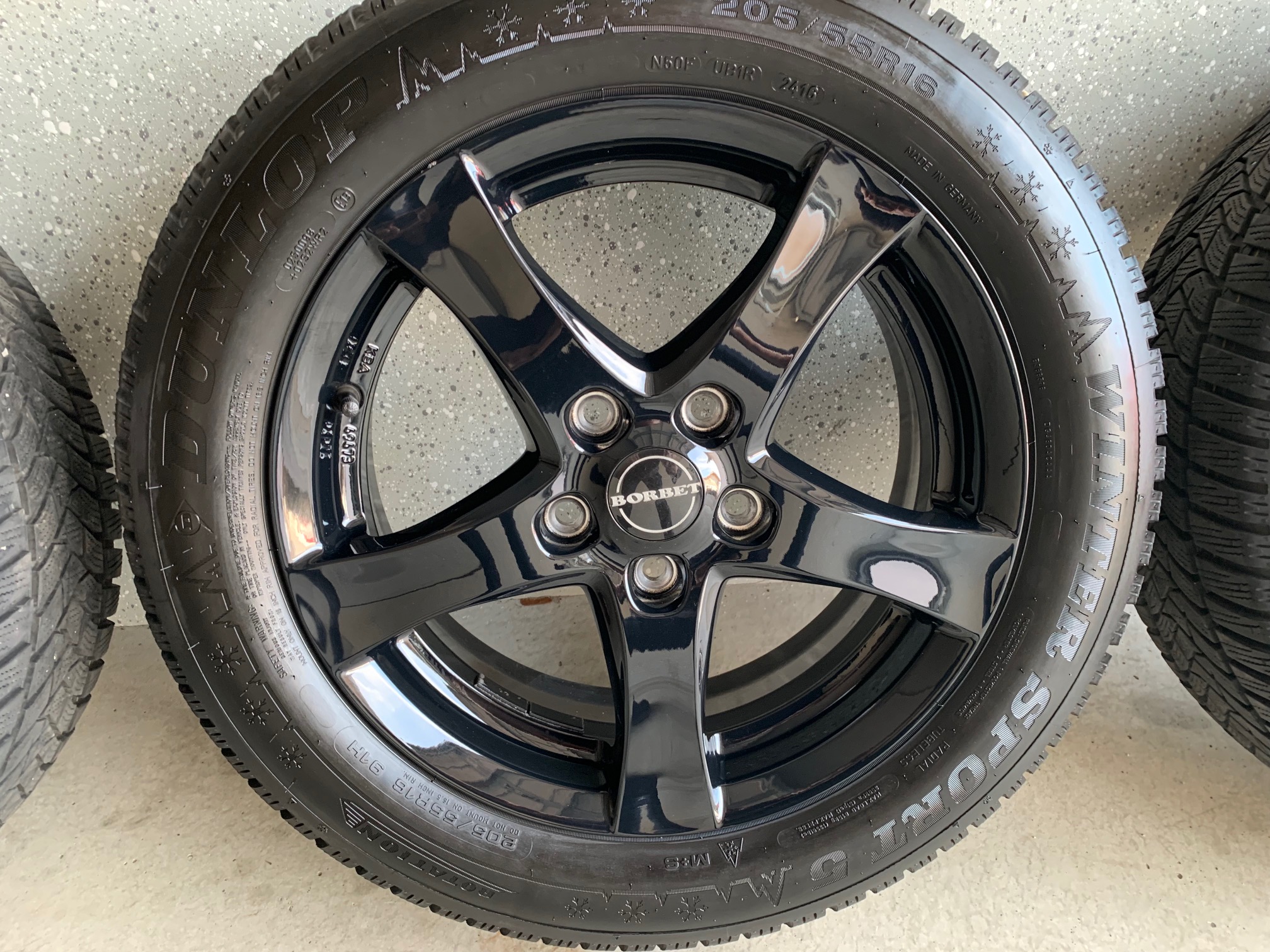 Im Angebot gut erhaltene Borbet F schwarz 6x16 ET48 Lochkreis 5x112 mit Winterreifen Dunlop Winter Sport 5 205/55 R16 91H.
