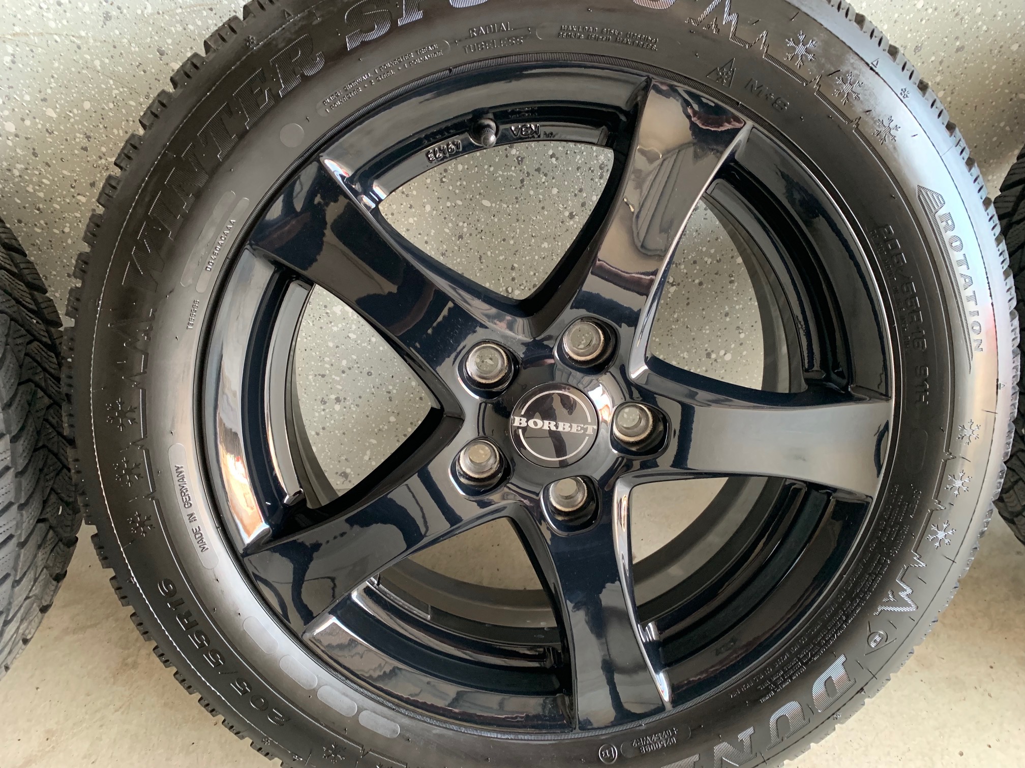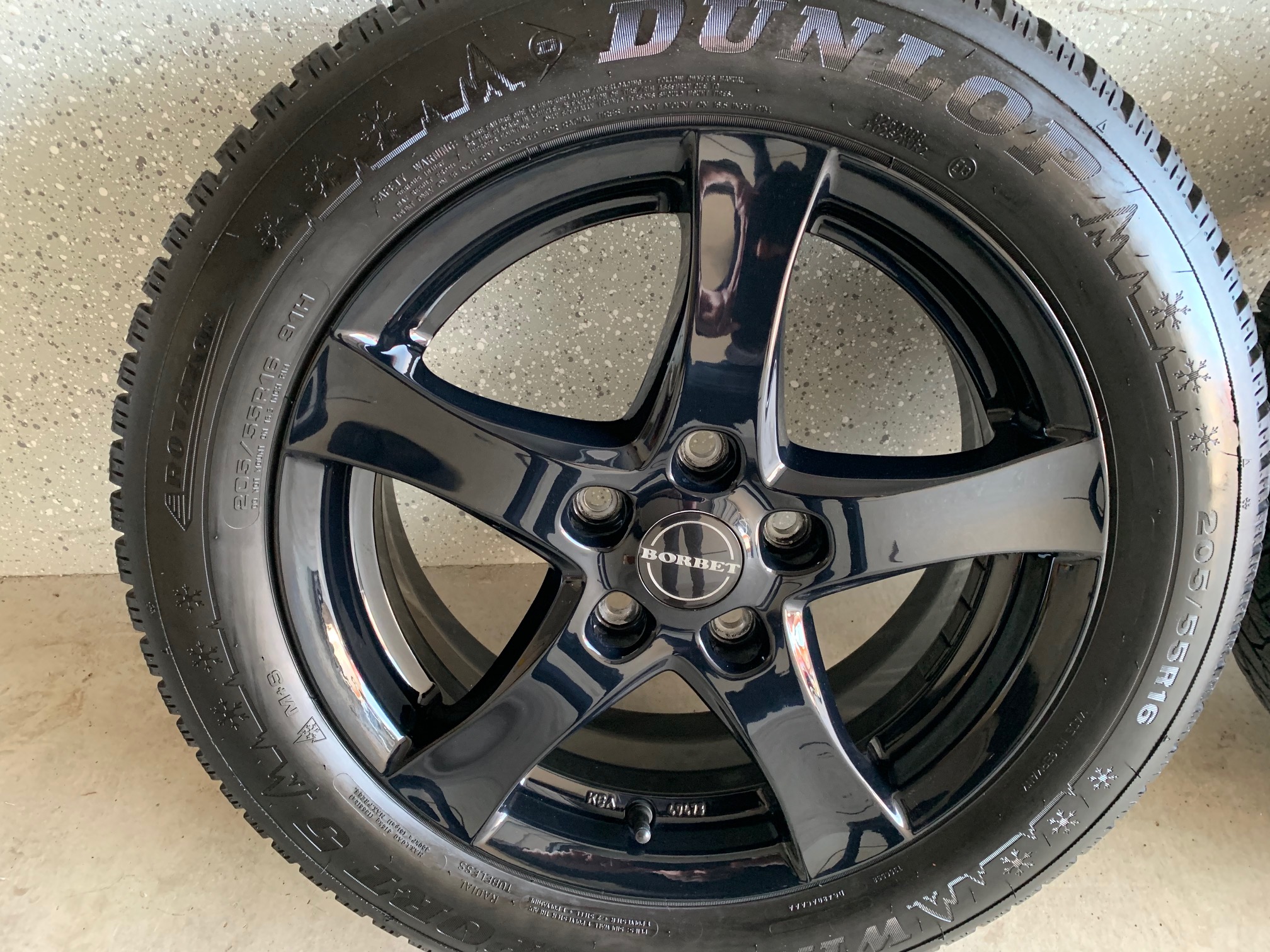 Im Angebot gut erhaltene Borbet F schwarz 6x16 ET48 Lochkreis 5x112 mit Winterreifen Dunlop Winter Sport 5 205/55 R16 91H.