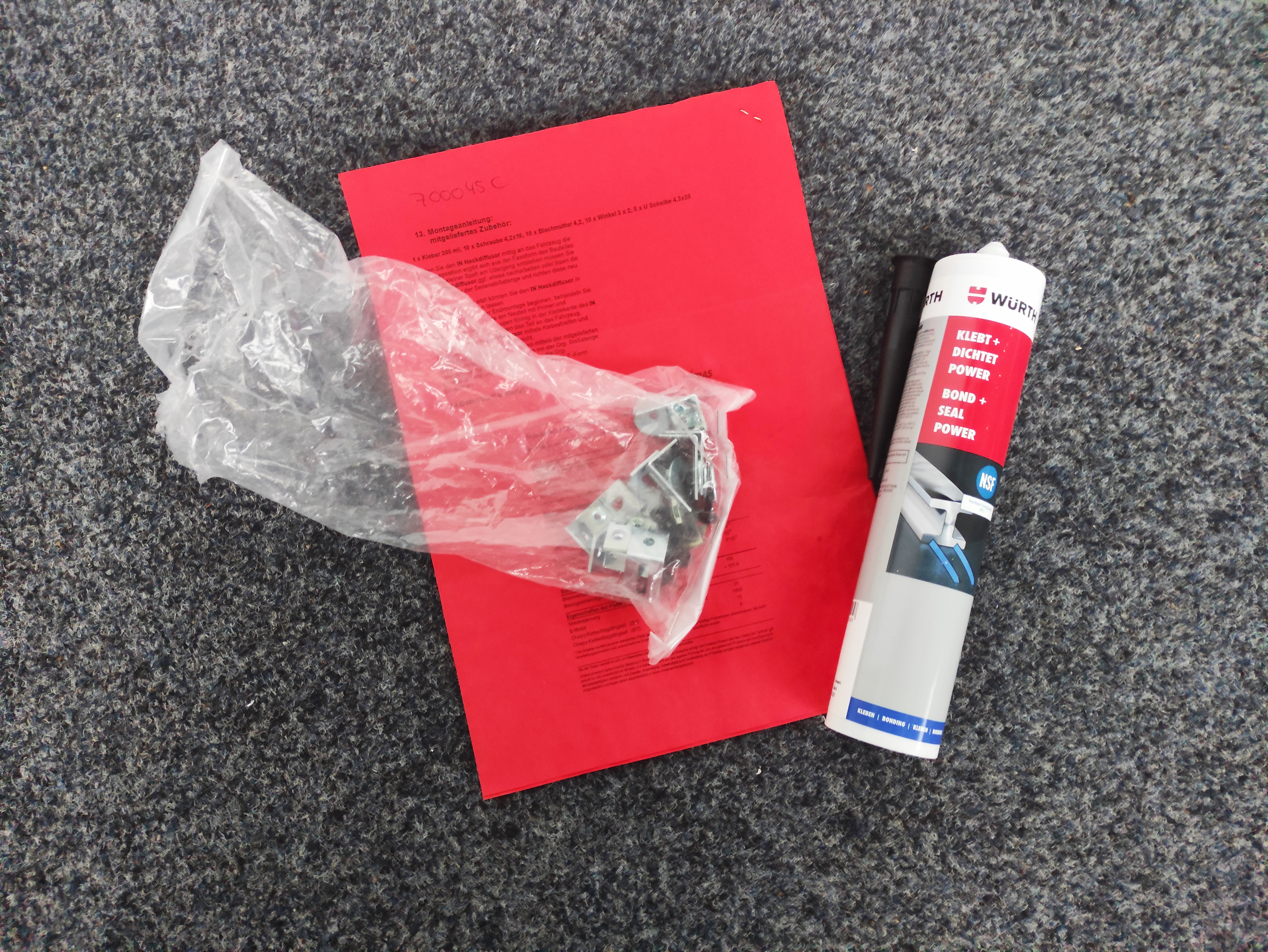 PS: Die benötigten Montageelemente sowie die ABE liegen dabei, der Kleber (Würth Klebt + Dichtet Power) hat allerdings sein MHD überschritten und müsste vermutlich neu besorgt werden.
