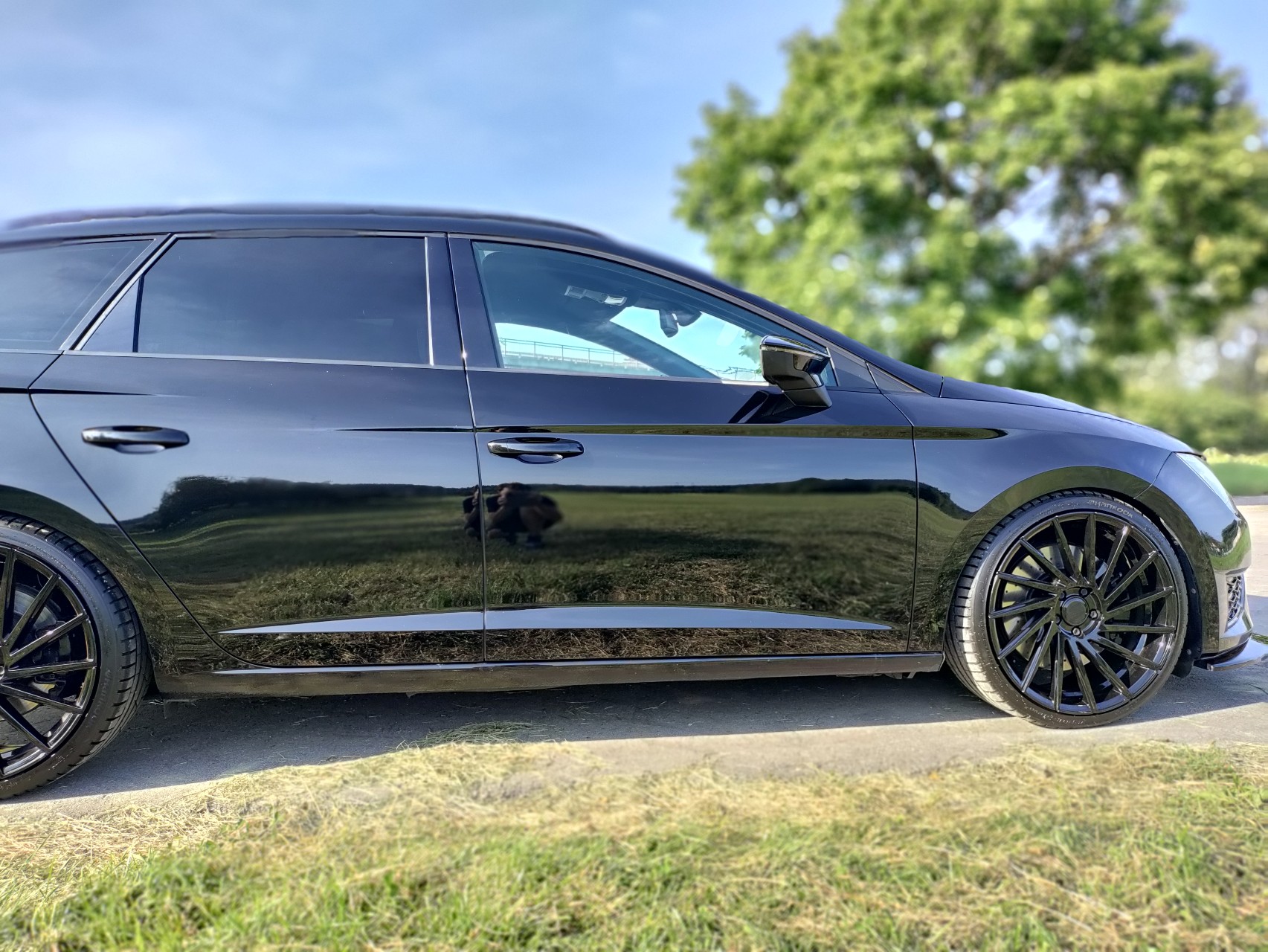 - Schwarz lackierte oder folierte Anbauteile (Seat Logo, Außenspiegel, Grill, ...)