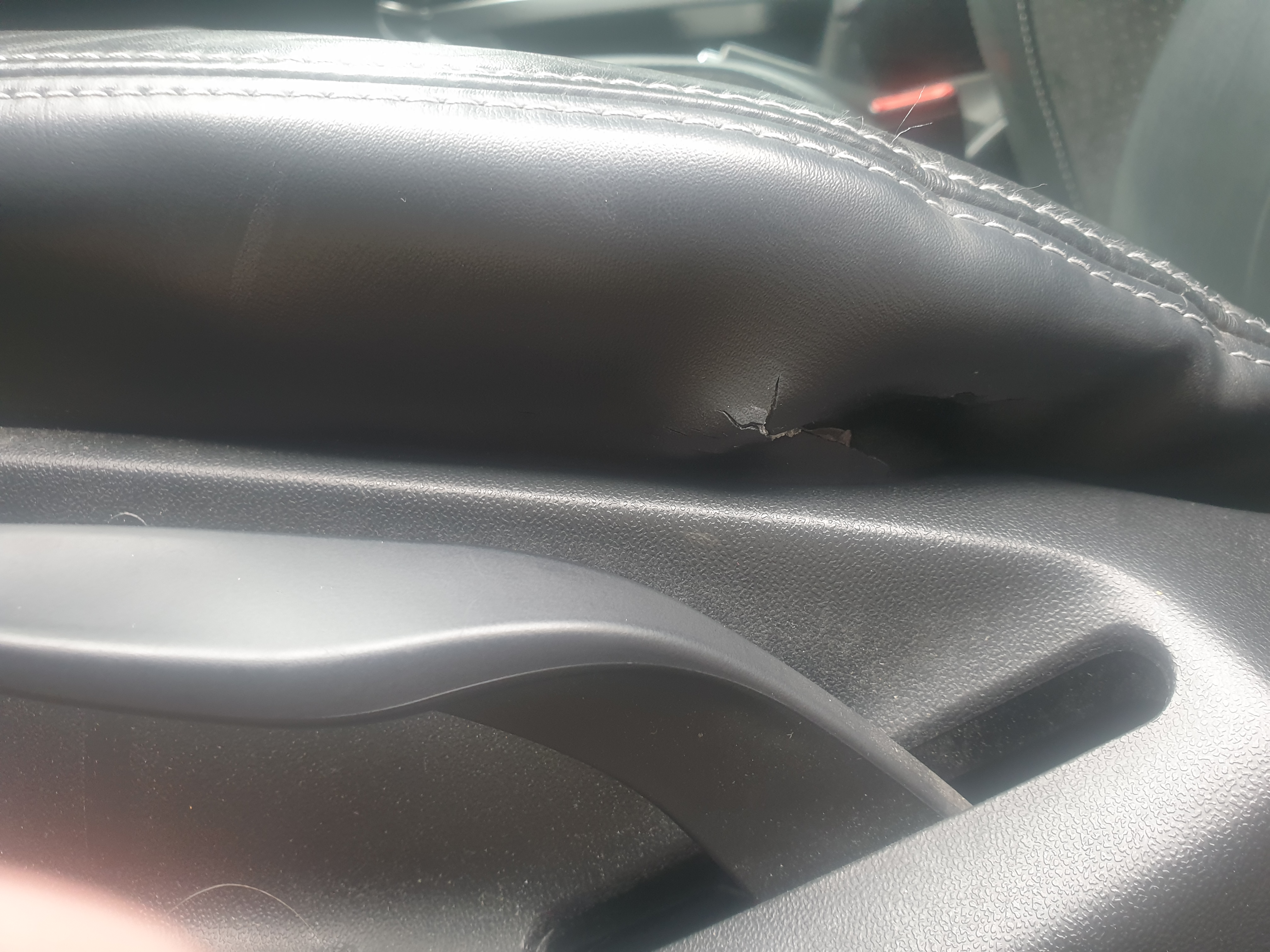 Am Fahrersitz ist ein kleiner Riss , Außenseite beim Hebel für die Höhenverstellung,....