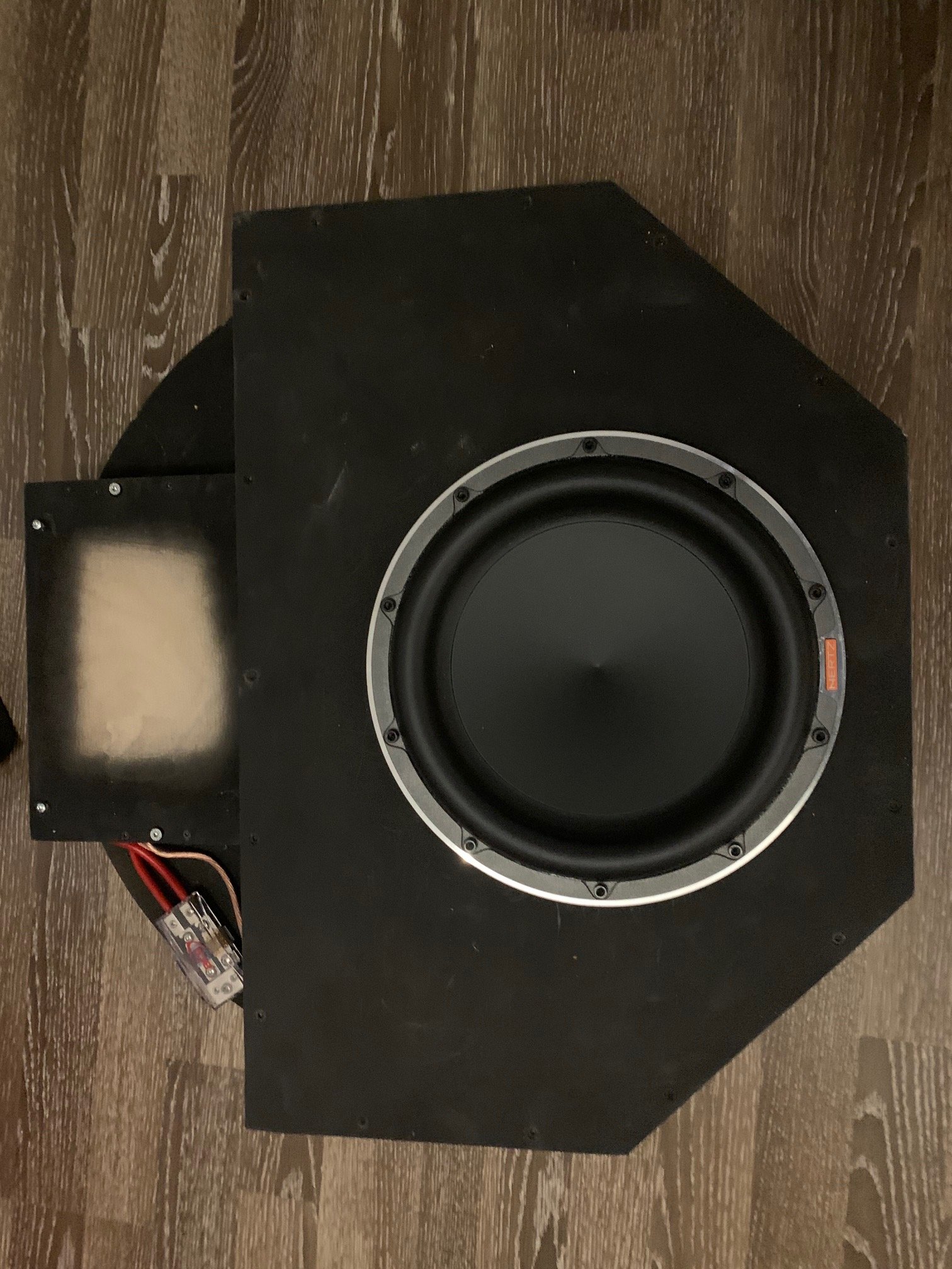 Subwoofer ist ein Hertz MP 250 D2.3. Dieser sowie das Gehäuse sind in einwandfreiem Zustand und funktionieren tadellos.
