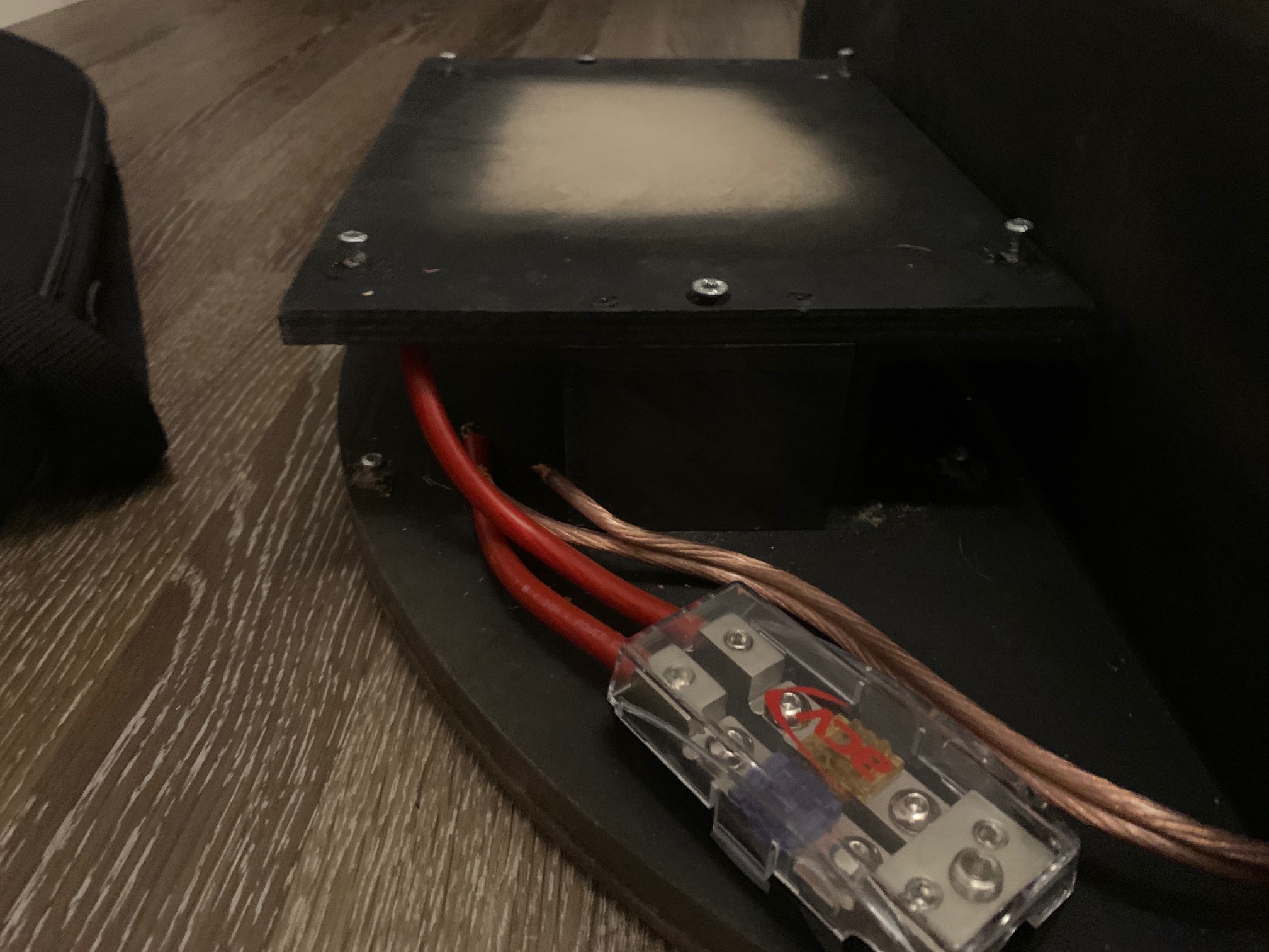 Im Angebot ist ein Subwoofer inklusive Gehäuse sowie Halterung für 2 Endstufen. Dieser ist auf die Reserveradmulde eines 5F zugeschnitten.